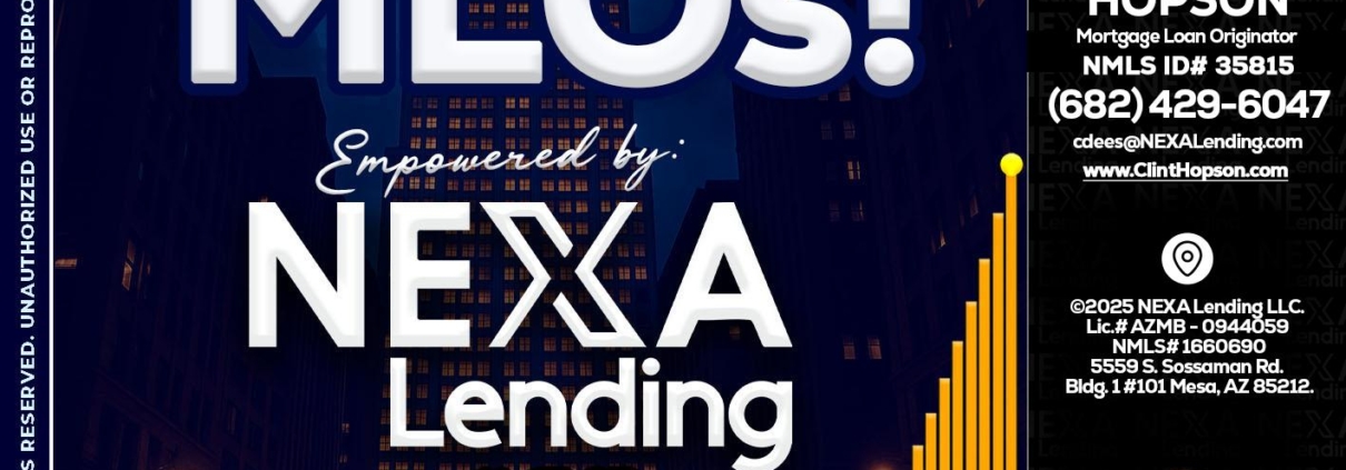 Hi, my name is Clint Hopson. I’m a Loan Officer with NEXA Mortgage LLC., offering personalized mortgage solutions, fast customized quotes, great rates and service with integrity.