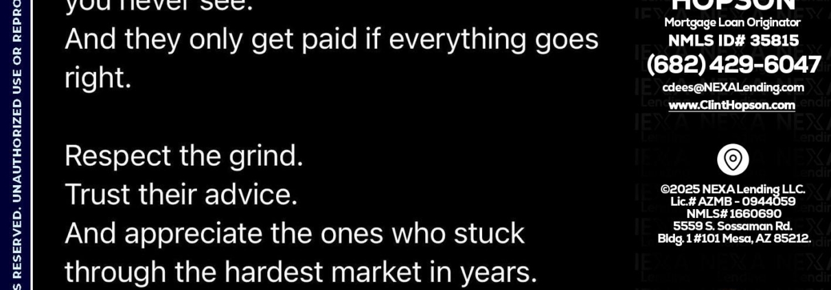 Hi, my name is Clint Hopson. I’m a Loan Officer with NEXA Mortgage LLC., offering personalized mortgage solutions, fast customized quotes, great rates and service with integrity.