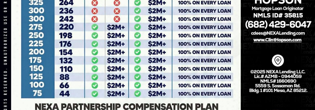 Hi, my name is Clint Hopson. I’m a Loan Officer with NEXA Lending LLC., offering personalized mortgage solutions, fast customized quotes, great rates and service with integrity.