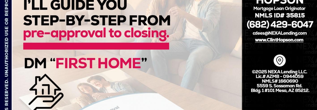 Hi, my name is Clint Hopson. I’m a Loan Officer with NEXA Lending LLC., offering personalized mortgage solutions, fast customized quotes, great rates and service with integrity.