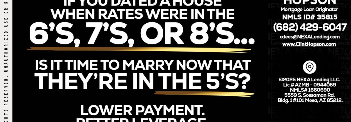 Hi, my name is Clint Hopson. I’m a Loan Officer with NEXA Lending LLC., offering personalized mortgage solutions, fast customized quotes, great rates and service with integrity.