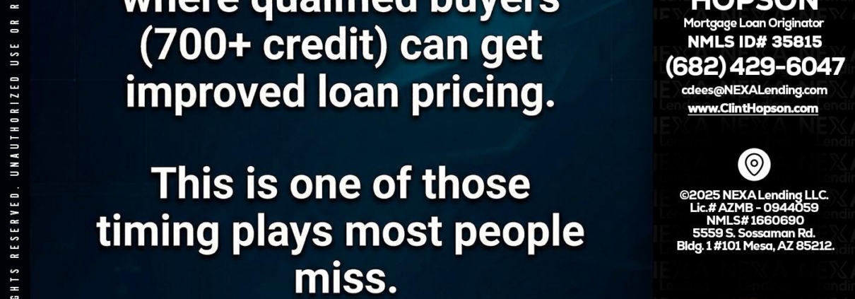 Hi, my name is Clint Hopson. I’m a Loan Officer with NEXA Lending LLC., offering personalized mortgage solutions, fast customized quotes, great rates and service with integrity.