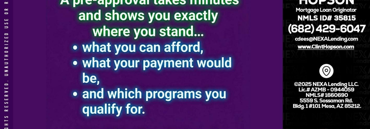 Hi, my name is Clint Hopson. I’m a Loan Officer with NEXA Lending LLC., offering personalized mortgage solutions, fast customized quotes, great rates and service with integrity.
