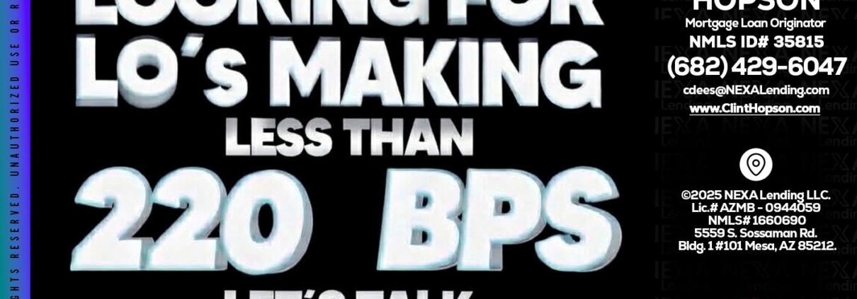 Hi, my name is Clint Hopson. I’m a Loan Officer with NEXA Lending LLC., offering personalized mortgage solutions, fast customized quotes, great rates and service with integrity.