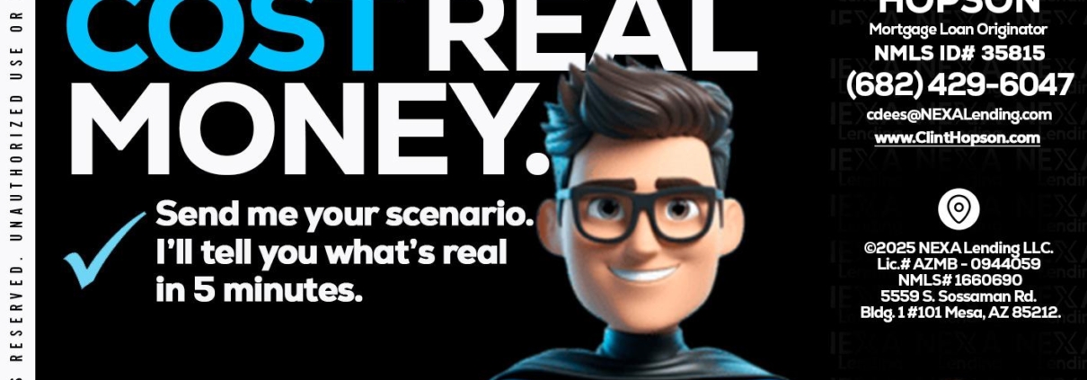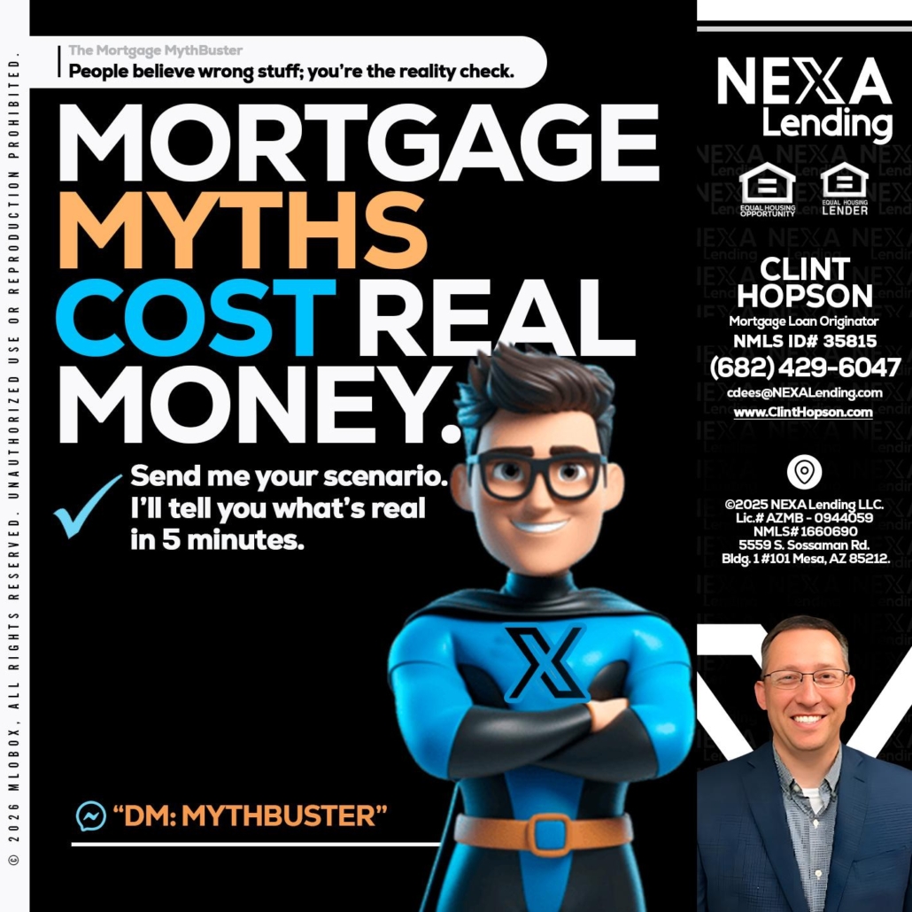 MORTGAGE MYTHS - Clint Hopson -Mortgage Loan OriginatorHi, my name is Clint Hopson. I’m a Loan Officer with NEXA Lending LLC., offering personalized mortgage solutions, fast customized quotes, great rates and service with integrity.