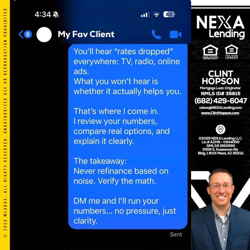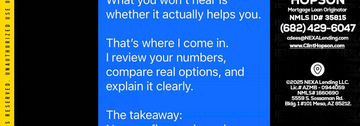 Hi, my name is Clint Hopson. I’m a Loan Officer with NEXA Lending LLC., offering personalized mortgage solutions, fast customized quotes, great rates and service with integrity.
