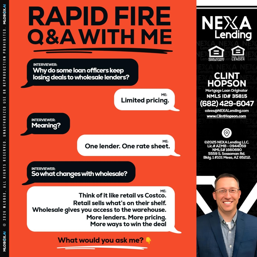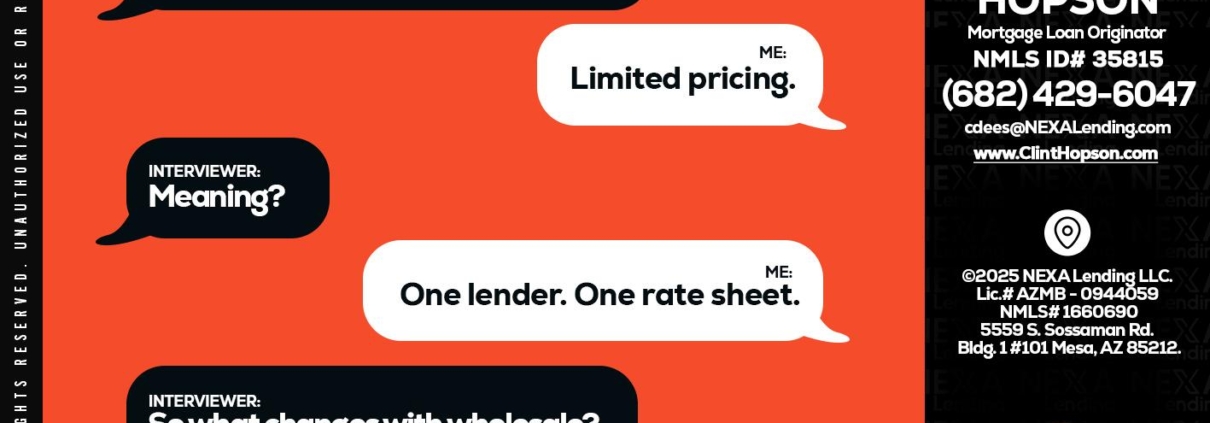 Hi, my name is Clint Hopson. I’m a Loan Officer with NEXA Lending LLC., offering personalized mortgage solutions, fast customized quotes, great rates and service with integrity.
