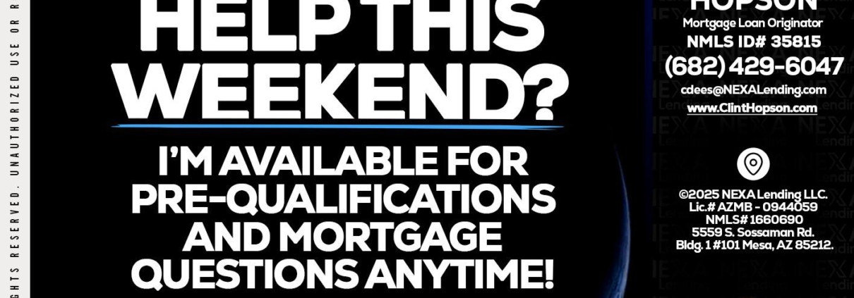 Hi, my name is Clint Hopson. I’m a Loan Officer with NEXA Lending LLC., offering personalized mortgage solutions, fast customized quotes, great rates and service with integrity.