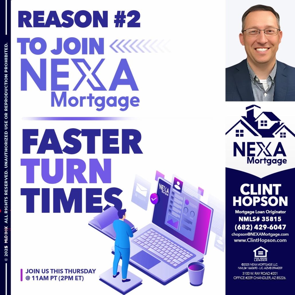 Hi, my name is Clint Hopson. I’m a Loan Officer with NEXA Mortgage LLC., offering personalized mortgage solutions, fast customized quotes, great rates and service with integrity.