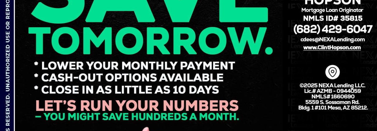 Hi, my name is Clint Hopson. I’m a Loan Officer with NEXA Mortgage LLC., offering personalized mortgage solutions, fast customized quotes, great rates and service with integrity.