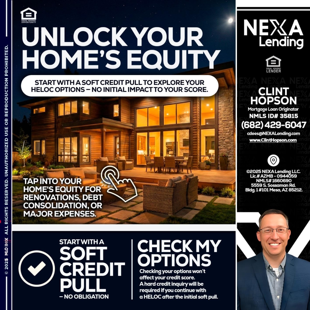 Hi, my name is Clint Hopson. I’m a Loan Officer with NEXA Lending LLC., offering personalized mortgage solutions, fast customized quotes, great rates and service with integrity.