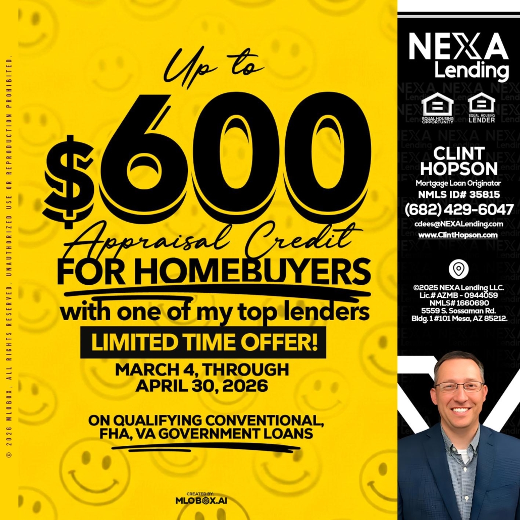 Hi, my name is Clint Hopson. I’m a Loan Officer with NEXA Lending LLC., offering personalized mortgage solutions, fast customized quotes, great rates and service with integrity.